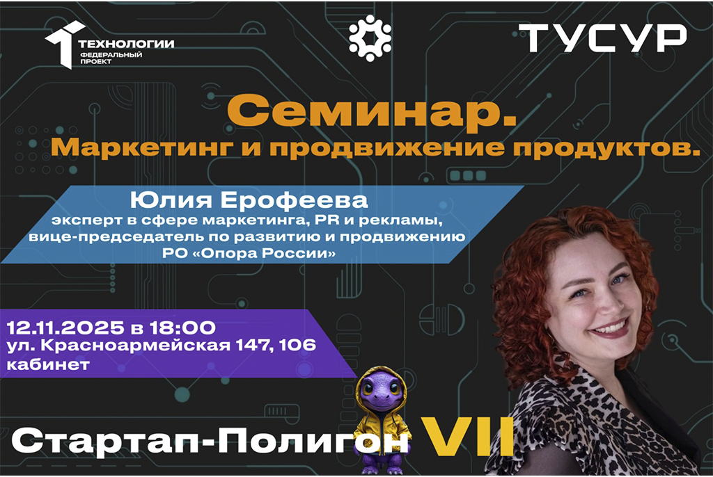 12 ноября в СБИ ТУСУРа пройдёт семинар по маркетингу и продвижению технологических продуктов. Это практическое мероприятие, ориентированное на маркетинг технологических решений. Участники разберут, как выстраивать стратегию продвижения, определять рабочие каналы, управлять восприятием продукта и укреплять доверие аудитории даже при ограниченных ресурсах.