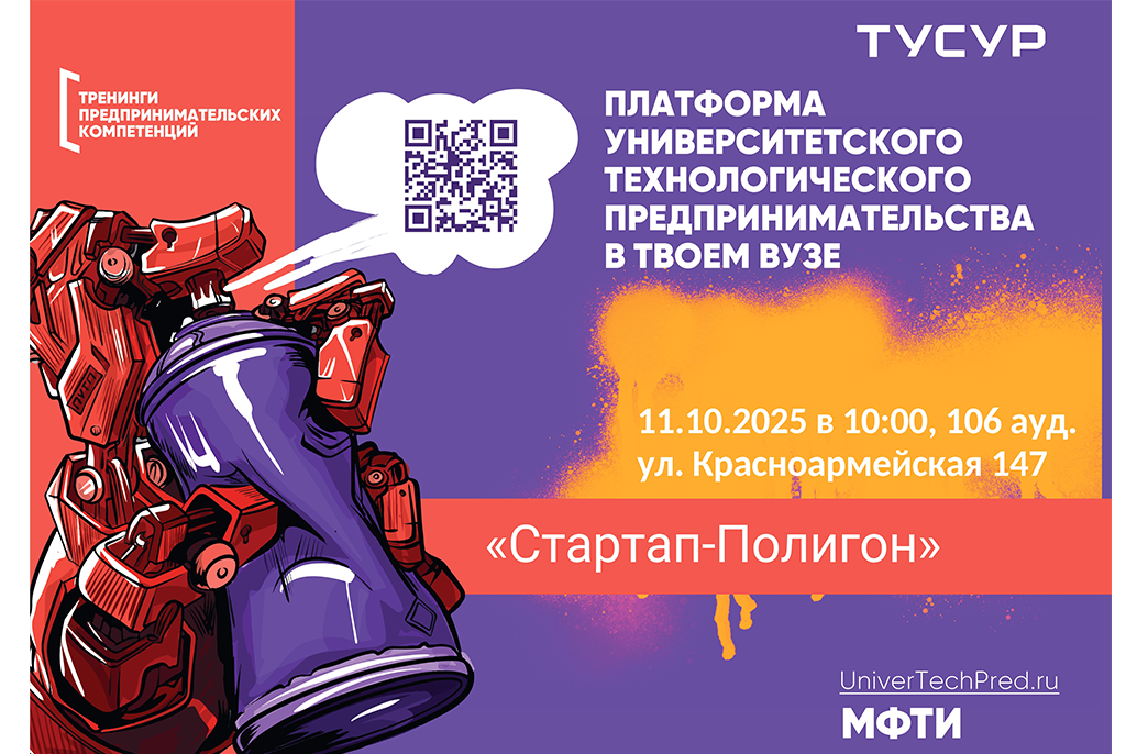 11 октября в 10:00 в СБИ ТУСУРа (ул. Красноармейская, 147) состоится тренинг «Стартап-полигон» — интенсив, на котором участники за несколько часов пройдут путь от проверки бизнес-гипотезы до презентации собственного инновационного проекта. На площадке «Стартап-полигона» студенты смогут выбрать технологию (машинное обучение, цифровые двойники), протестировать идею, поработать с реальными кейсами и даже сыграть в проектную игру.