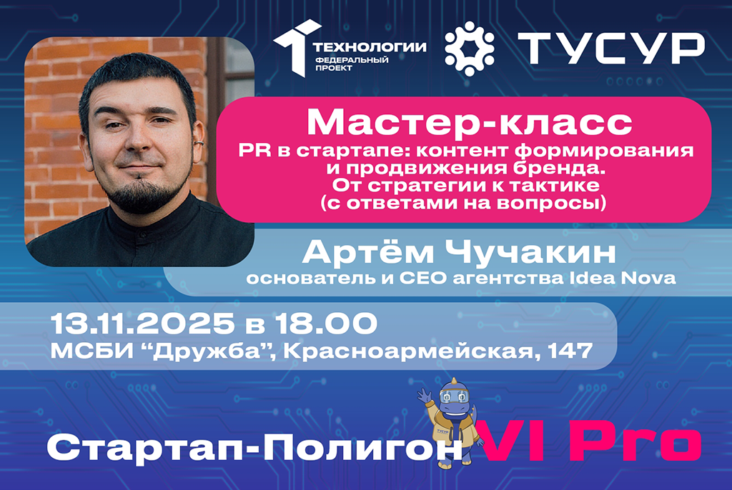 13 ноября в МСБИ «Дружба» ТУСУРа состоится практический мастер-класс «PR в стартапе: контент формирования и продвижения бренда. От стратегии к тактике».