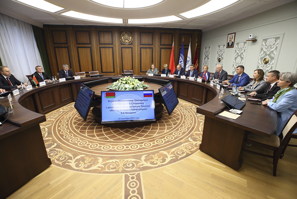 Делегация Томской области также приняла участие во встрече с главой Академии наук Беларуси Владимиром Караником. Стороны обсудили совместные проекты и потенциал двустороннего сотрудничества. О перспективных научных направлениях и производственно-технологической кооперации рассказали на встрече заместитель губернатора по научно-технологическому развитию Людмила Огородова и ректор ТУСУРа Виктор Рулевский.