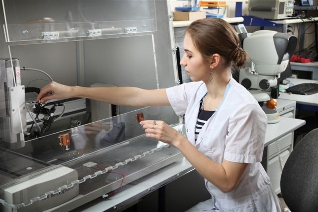 - Наше конструкторское бюро занимается разработкой технологии нанесения органических слоев на подложку и созданием специализированного оборудования для измерений характеристик полученных изделий. Работа ещё не закончена, но уже есть первые результаты, отработаны технологии принтерной печати проводящих, полупроводящих и диэлектрических слоев OLED-матриц. На основе этих технологий мы, совместно с коллективом Сибирского физико-технического института ТГУ, впервые в России создали первые макеты полноцветных OLED-матриц, светоизлучающие и транспортные слои которых получены с помощью печатной технологии, - говорит научный руководитель СКБ «Смена» ТУСУР Антон Лощилов.